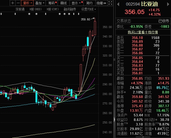 2月14日,比亚迪(002594)A股股价迎来高光时刻,盘中涨幅显著,股价创下历史新高。在过去8个交易日内,比亚迪累计涨幅约25%,其A股市值也再次站上万亿大关。无独有偶,在港股市场,比亚迪股价同日创下历史新高。